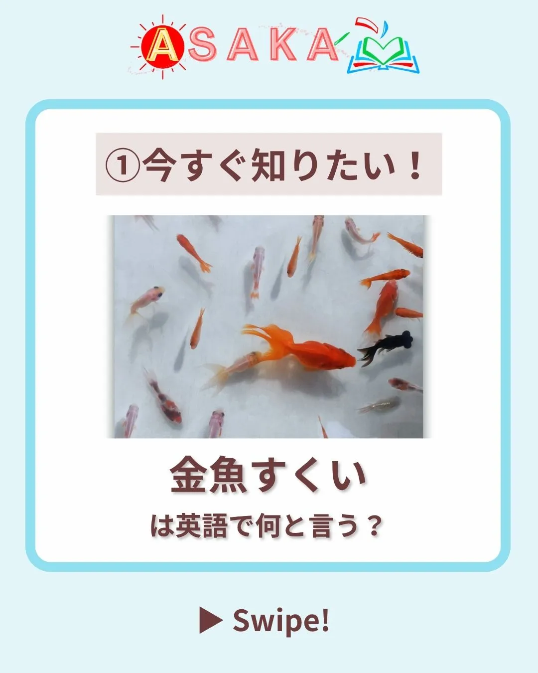📢【夏のプチ英語 第2弾】 📢【夏のプチ英語第2弾】これ、英語でなんて言う?🎐✨夏祭りの定番「金魚すくい」実は英語では“goldfishscooping”と言います!👀海外では“goldfishcatchinggame”と説明するのも分かりやすいよ💡英語の例文も…